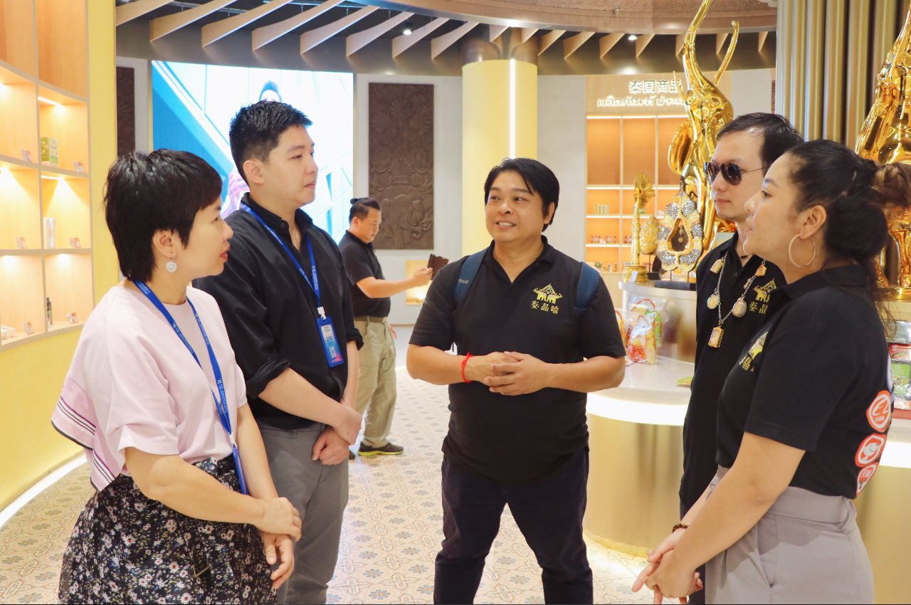 到訪的泰國(guó)企業(yè)代表團(tuán)均是在2022年9月14日匯聚中心啟動(dòng)時(shí)就已將商品入駐泰國(guó)館的企業(yè),但多數(shù)企業(yè)未能親臨匯聚中心。在此次參觀匯聚中心主題展館時(shí),泰國(guó)館館長(zhǎng)用流利的泰語(yǔ)與泰國(guó)企業(yè)代表團(tuán)一行進(jìn)行溝通。他們非常欣喜地表示雖然人未到,但商品已經(jīng)通過(guò)匯聚中心走進(jìn)中國(guó)市場(chǎng)并受到客商們的青睞,對(duì)于將更多商品入駐匯聚中心也更有信心。