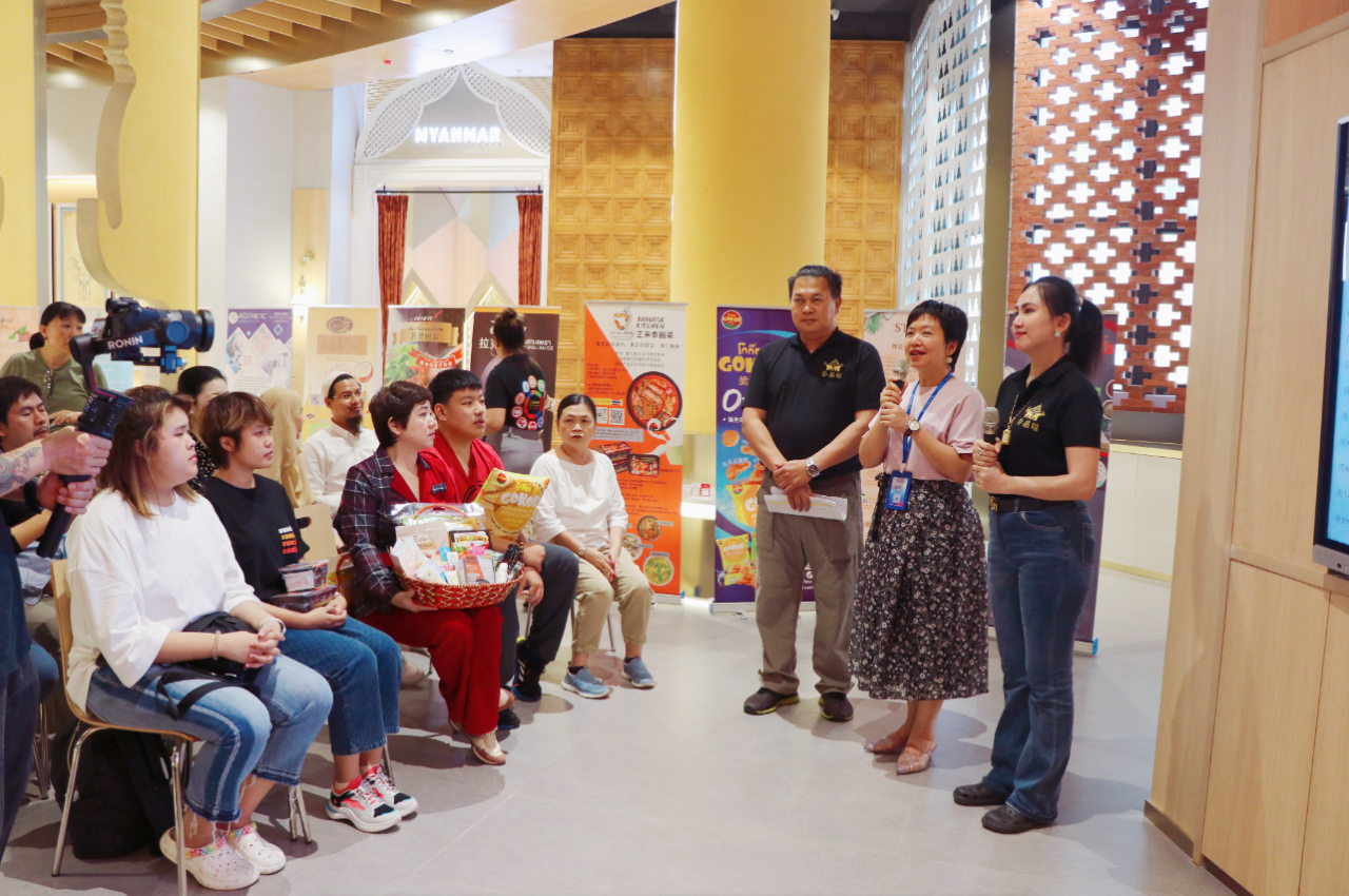盧春梅副總經(jīng)理表示泰國(guó)是世界著名的旅游勝地,商品以種類豐富、物美價(jià)廉等特點(diǎn)深受中國(guó)和東盟國(guó)家市場(chǎng)歡迎。匯聚中心泰國(guó)館通過(guò)將泰國(guó)經(jīng)典的蓮花、佛像、大象等元素巧妙融合到展館設(shè)計(jì)之中,給客商身臨其境之感,自開(kāi)館以來(lái)就因濃郁的泰國(guó)傳統(tǒng)文化和豐富的商品成為匯聚中心最受歡迎的展館之一。這次近距離接觸,泰國(guó)企業(yè)代表團(tuán)推銷產(chǎn)品的熱忱令人感動(dòng)。她非??春锰﹪?guó)的直播市場(chǎng),匯聚中心愿與泰國(guó)企業(yè)在電商直播、線下商貿(mào)等領(lǐng)域加強(qiáng)合作交流,助力更多的泰國(guó)優(yōu)質(zhì)企業(yè)及機(jī)構(gòu)到匯聚中心落戶,探尋合作商機(jī)、分享發(fā)展機(jī)遇,推動(dòng)中泰雙方的經(jīng)貿(mào)合作再上新臺(tái)階。
