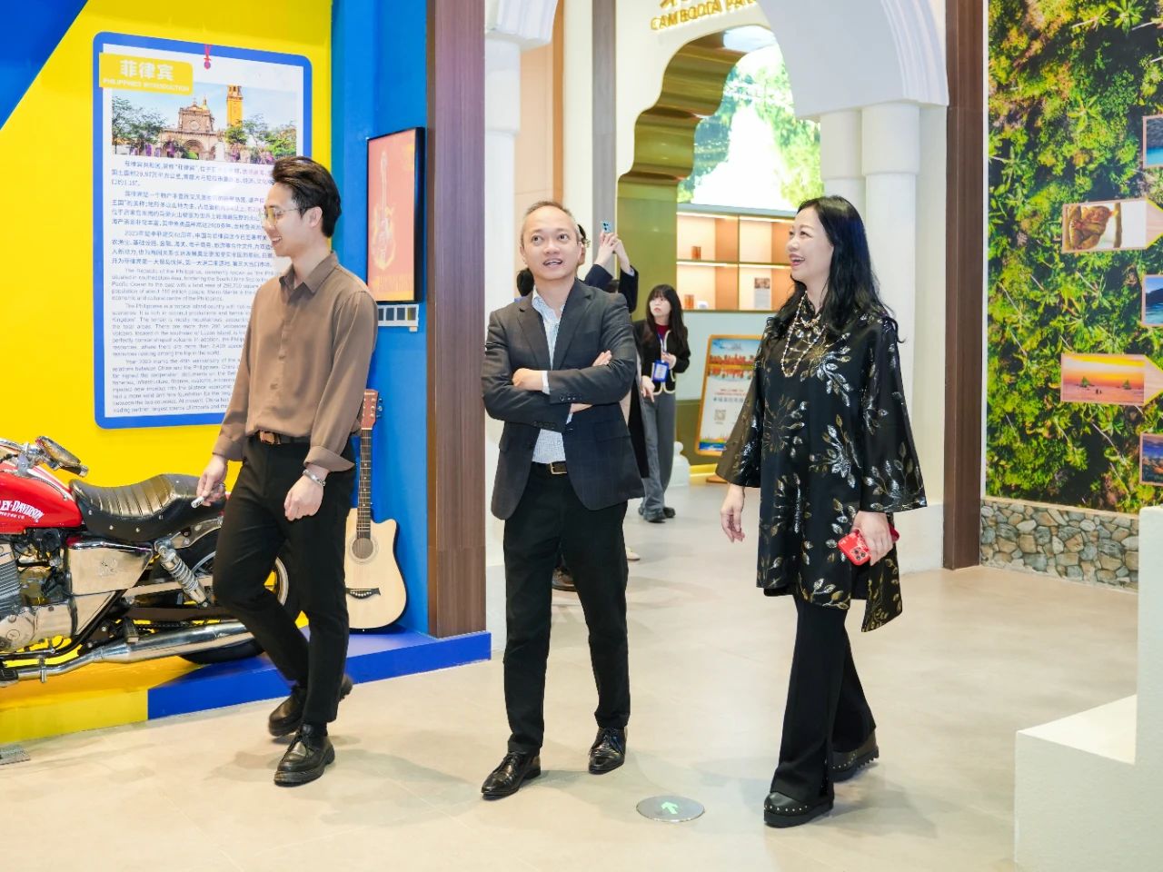 福安來商務(wù)領(lǐng)事表示,一走進(jìn)匯聚中心,迎面而來的熟悉場(chǎng)景令他不禁想起首次到訪的情景。他指出,匯聚中心充分結(jié)合RCEP區(qū)域國(guó)家乃至“一帶一路”沿線重要國(guó)家的人文風(fēng)俗元素,完美融入每一個(gè)主題展館中,使得各館各具特色,令人印象深刻。尤其是菲律賓館,里面壯觀的沙丁魚風(fēng)暴、搖曳的椰林沙灘、原生態(tài)茅草屋與歡快的吉他,以及獨(dú)具菲律賓本國(guó)特色的窗戶樣式等,都精準(zhǔn)還原了當(dāng)?shù)氐娘L(fēng)貌,讓他倍感親切,仿若置身家鄉(xiāng)。他相信很多到訪匯聚中心的嘉賓都會(huì)與他有著同樣的感受——這里的美好一見傾心、再見難忘,如陳釀般令人回味悠長(zhǎng)。