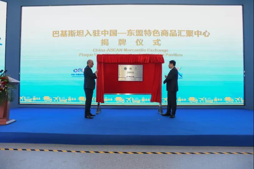 在第18屆中國(guó)—東盟博覽會(huì)盛大開(kāi)幕之際,9月9日,巴基斯坦入駐中國(guó)—東盟特色商品匯聚中心揭牌儀式在廣西南寧中新南寧國(guó)際物流園舉行,廣西壯族自治區(qū)黨委常委、南寧市委書(shū)記王小東,巴基斯坦駐華大使莫因·哈克等共同出席揭牌儀式并致辭,對(duì)巴基斯坦在廣西南寧設(shè)置展示館表示祝賀。
