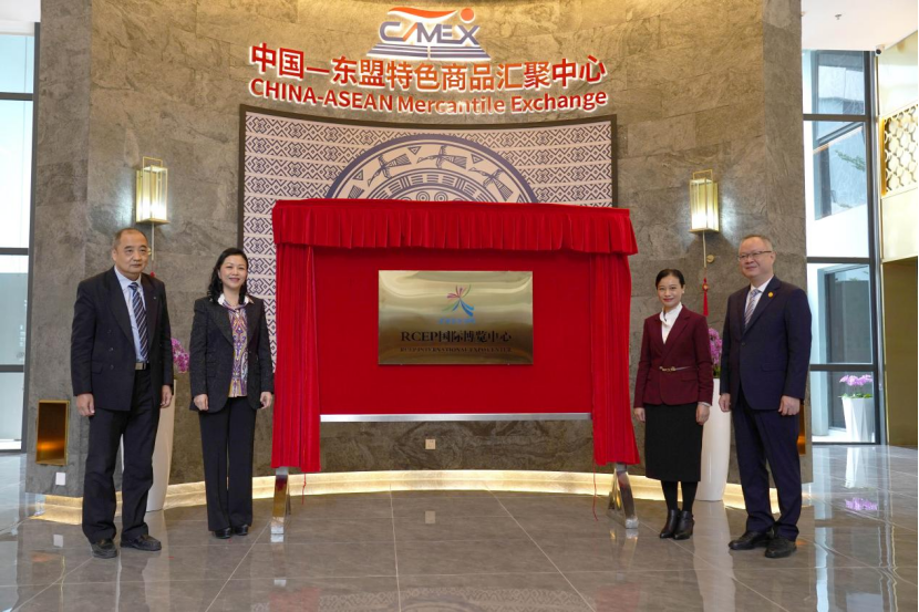 12月8日,RCEP國際博覽中心掛牌儀式在中國—東盟特色商品匯聚中心(以下簡稱“匯聚中心”)成功舉辦。RCEP國際博覽中心的設立將對中國—東盟自貿區(qū)3.0版建設、高質量實施RCEP建設起著積極的促進作用。