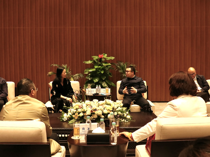 12月9日上午,廣西壯族自治區(qū)梧州市委書記蔣連生,廣西壯族自治區(qū)梧州市委副書記、梧州市人民政府市長(zhǎng)鐘暢姿率隊(duì)到中國(guó)—東盟特色商品匯聚中心(以下簡(jiǎn)稱“匯聚中心”)參觀,實(shí)地調(diào)研匯聚中心的發(fā)展情況。廣西新中產(chǎn)業(yè)投資有限公司、中國(guó)—東盟特色商品匯聚中心董事長(zhǎng)趙海燕接待了調(diào)研組一行。